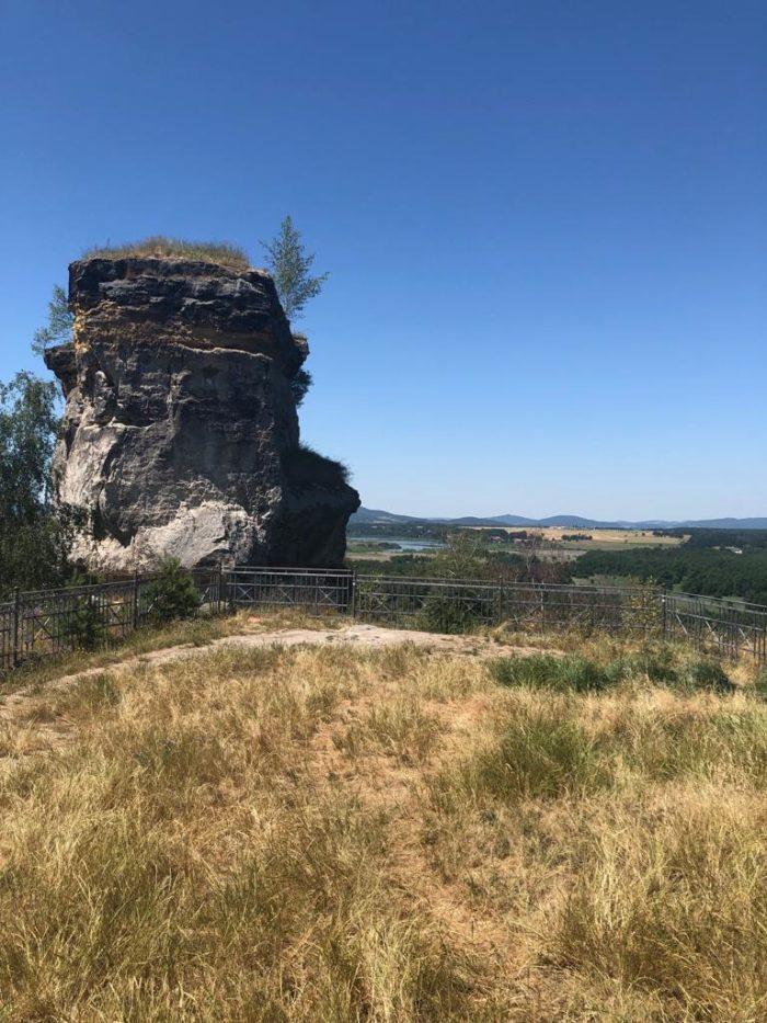Stan byl sbalený asi za 15 minut. V 8:15 už jsme objevovali skalní útvar pokličky. Parkování je zde placené (10 Kč na hodinu, automat) a k Pokličkám vás čeká asi tisíc schodů, ovšem skalní útvary jsou to zajímavé, a tak jsme nelitovali.