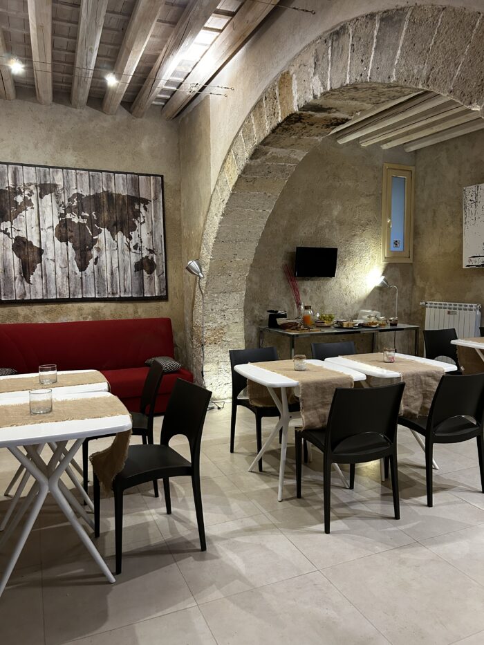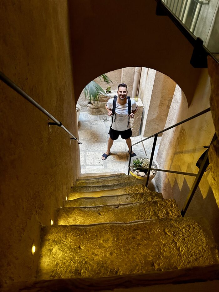 Samotný hotel je bez přehánění historický skvost. Vkusně zrekonstruovaný tak, aby dal vyniknout místní architektuře a zároveň, aby plně vyhovoval potřebám hostů. Původní klenby a brutálně strmé schody osazené zábradlím a skleněnými zábranami. Vše promyšleně nasvícené. Samotný pokoj menší, ale vkusný. Nechybí lednička s mikromrazákem a klimatizace. Jediné, co trošku hapruje je místní wifi, ale to se vzhledem k síle stěn dá pochopit. Taková Sicilská klasika. Vytoužená sprcha a na místo odpočinku jen převléknutí se do letního. V dlouhých kalhotách jsme už trošku trpěli. 😊