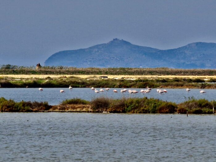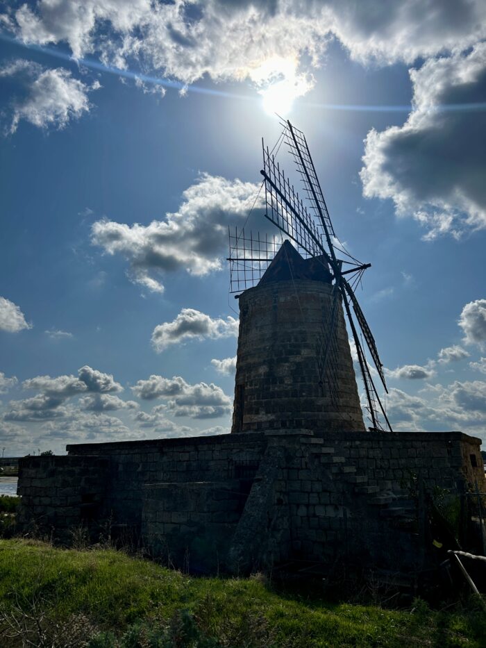 Po vydatné snídani vyrážíme pro změnu pěšky na pět kilometrů vzdálené solné pláně, které jsou součástí přírodní rezervace Riserva Naturale Saline di Trapani e Paceco. Vidět zde můžete nejen postup získávání soli z moře, ale při troše štěstí i volně žijící plameňáky. Sice z dálky, i tak mám ale o zážitek postaráno. Hejno ptáčků do růžova zbarvených za tu poměrně náročnou procházku za pravého poledne rozhodně stálo.
