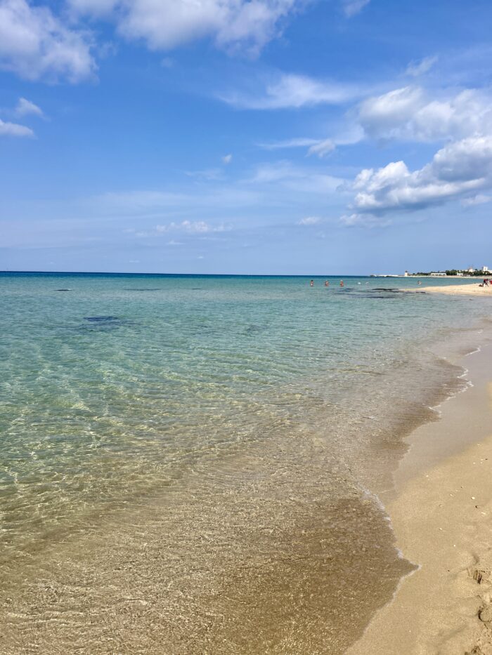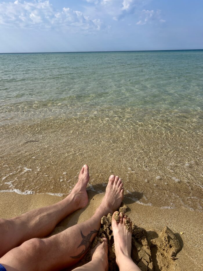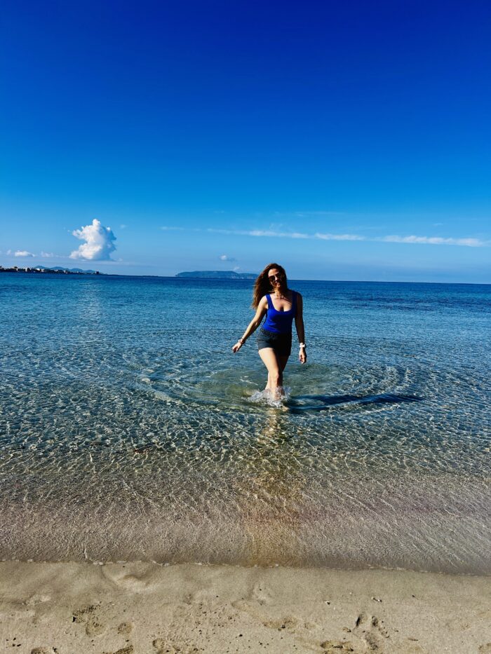 Vzduch je od rána jiný. Do plic žhavý a pro dýchání těžký. Doslova se tetelí a já nejednou zapochybovala nad rozhodnutím se nenamazat. Večer mají prý přijít bouřky se silným deštěm. Zatím tomu ale vyjma jemného oparu nic nenasvědčuje. Cestou nazpět se občerstvíme v kavárně. Klasické espresso, pistáciová zmrzka a pro změnu pistáciový koblížek. Pro mě přímo nebeské kombo. Pistácií se v životě nepřejím, kávy nepřepiju. Italské chutě mám, energii a vyřídilku také. Docela zapadám, řekla bych. Angličtina je osvěžená, ostych zapomenut. Pocovidový chraplák mi dost pomáhá s přízvukem. 😊 Procházku končíme na pláži (tentokrát na pláži Spiaggia San Giualiano di Erice). V dáli nad pevninou je vidět první známka kupovité oblačnosti. Komu by ale dělaly mráčky starost, když je momentálně jasno a teploměr atakuje letních 27 ve stínu? Nám rozhodně ne. V mžiku jsme v plavkách a v druhém ve vodě. Opalovák jsme nevzali. Rozum bojuje s touhou se slunit. Díky bohu za letní základ. Drahá polovička sice nemá tak silné italské chutě, ale oproti mně disponuje jižanskou pigmentovou výbavou. On v mžiku černá, já pozvolna zlátnu. 😂  Ještě že tak. Mohla jsem skončit, jako další růžový plameňák. Začíná se zvedat silný vítr a pro nás nadešel čas k návratu.