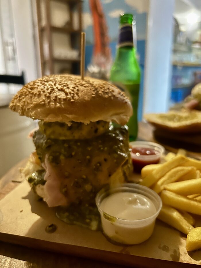 V nohou máme úctyhodných 25 tisíc kroků, a to nás čeká ještě cesta na večeři. Dnešek je jednoznačně nejteplejším dnem dovolené. Na večeři vyrážím jen v topíku a sukni. Horizont už straší a nárazový vítr nevěstí nic dobrého. Náročný den s velkým výdejem si žádá doplnění kvalitního paliva. Po chvilkovém bloudění usedáme v restauraci, která vaří typická jídla netypickým způsobem. Máme chuť na vše. Zvítězí hovězí burger s burratou a světe div se, s pistáciovým přelivem naslano. Upřímně se divím, že jsem se nevrátila domů spíš zelená. Dostanu chuť na Aperol a objednávám si jejich speciální aperolový koktejl. Jídlo skvělé, nutričně tak vydatné, že praskáme ve švech. Drink vypadá lákavě, ale není. Absolutně ne. Vypít ho musí Zděnda a já jemu usrkávám pivko Peroni. Nikdy víc. Venku se začínají čerti ženit. Nevím, jestli jsem se už někdy zmínila, ale žiju s lovcem bouřek. Ve chvílích, kdy já se zaručeně bojím a nejradši bych se skryla ve sklepě budovy s hromosvodem, Zděnda ožívá a radostně komentuje každý záblesk. Hrozně nutně se potřebuje podívat na bouřku v dáli nad mořem. Podívaná skvělá, ale osobně bych si ji klidně odepřela. Blíží se rychle a já nekompromisně zavelím k ústupu. Dnešní terasové vínko bylo rychlé. Jen co blesk udeřil do nedalekého domku, zaječím a jde se spát!