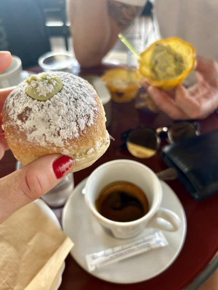 Že jsem milovník hotelových snídaní je všeobecně známý fakt. Recenze našeho hotelu navíc hovoří o 5 hvězdičkách z 5 a to už něco znamená. Není tedy divu, že se do druhého dne probudím hladová a mlsná. Taková pro změnu má klasika. Snídaně se podávají ve vstupní hale, která slouží přes den, jako recepce, malinká a útulná. Na stole vše ze sladkého. První ulovím, jak jinak než pistáciový croissant. Na těch jsem ujížděla celou předešlou dovolenou. Slané, ale chybí. Přisuzujeme to pozdnímu vstávání a nenecháme si prvotní dojem pokazit. Jen co se usadíme, už nám obsluha nabízí čerstvě nachystaná vajíčka dle preferencí. Omeleta, míchaná, natvrdo… a samozřejmě kávu. Objednáme si míchaná a snídaňové cappuccino. Jsem spoko. Jak Zdenda říká, když mám hlad, nejsem to já. 😂 Individuální přístup k hostům se mi líbí moc. Hody pro dnešek uzavřeme silným espressem a s díky se jdeme nachystat na procházku.