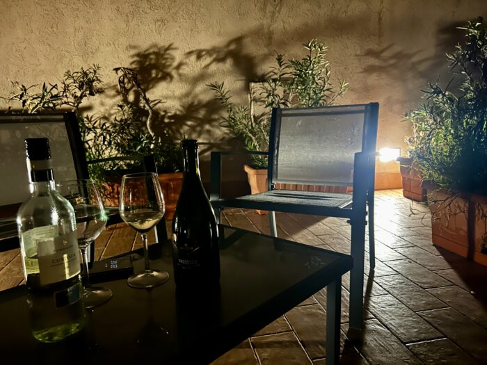 Další procházkou do přístavu na západ slunce. Jak ten byl barvitý. Večer mi stačí přes tričko rozepnutá kožená bunda, ale to jen pro dnešek. První večeři jsme pojmuli tradičně-netradičně. V potravinách nakoupili vše oblíbené. Olivy, rajčata, Burratu, místní sýry, salámy a samozřejmě Prosecco. To jsem se naučila pít na jaře a když už dostanu chuť po večeři na sklenku, je to od té doby právě lehounké Prosseco. Bonusem ubytování je prostorná terasa na střeše hotelu. S posezením a výhledem do vnitrobloku. Tady budeme trávit každý večer a povídat… Zamotaná do deky se sklenkou v ruce přemýšlím, jaká vzácnost je potkat někoho, s kým můžu své sny nejen probírat, ale i plnit. Kdo má pochopení pro mou touhu poznávat a užívat každou vteřinu na maximum. Asi soulmate.